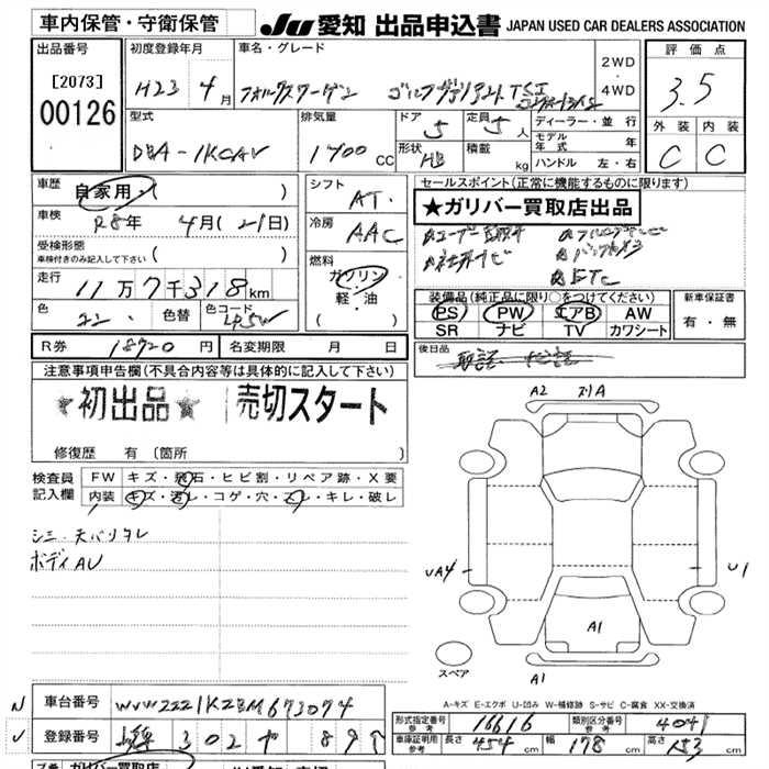 VOLKSWAGEN GOLF VARIANT - лот 126