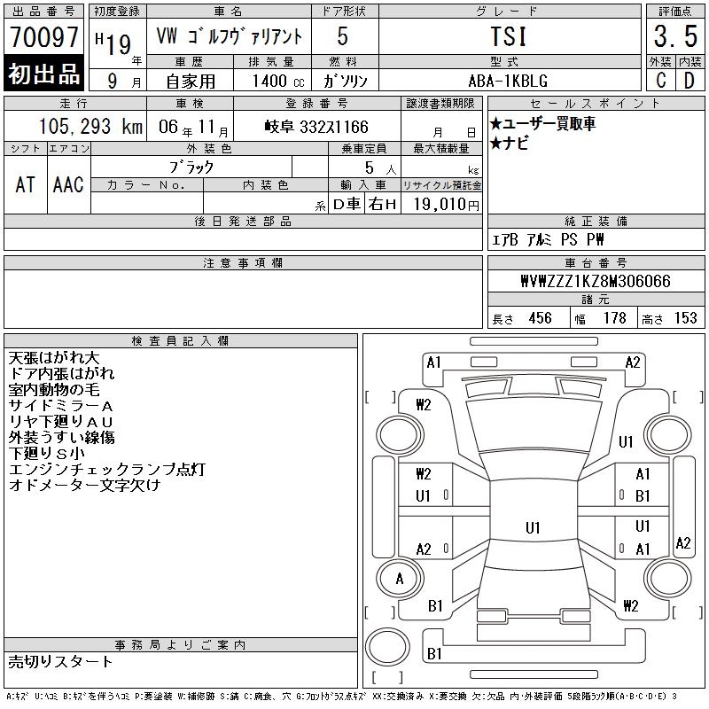 VOLKSWAGEN GOLF VARIANT - лот 70097