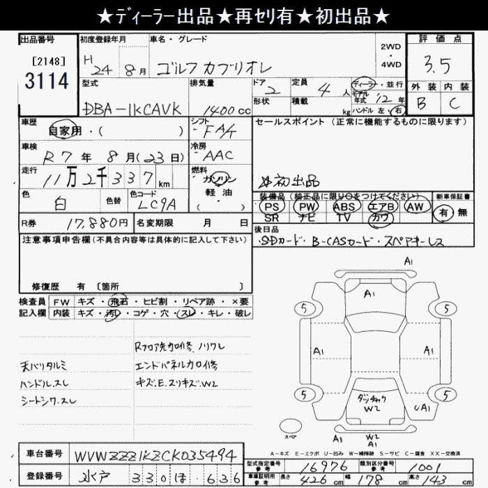 VOLKSWAGEN GOLF - лот 3114
