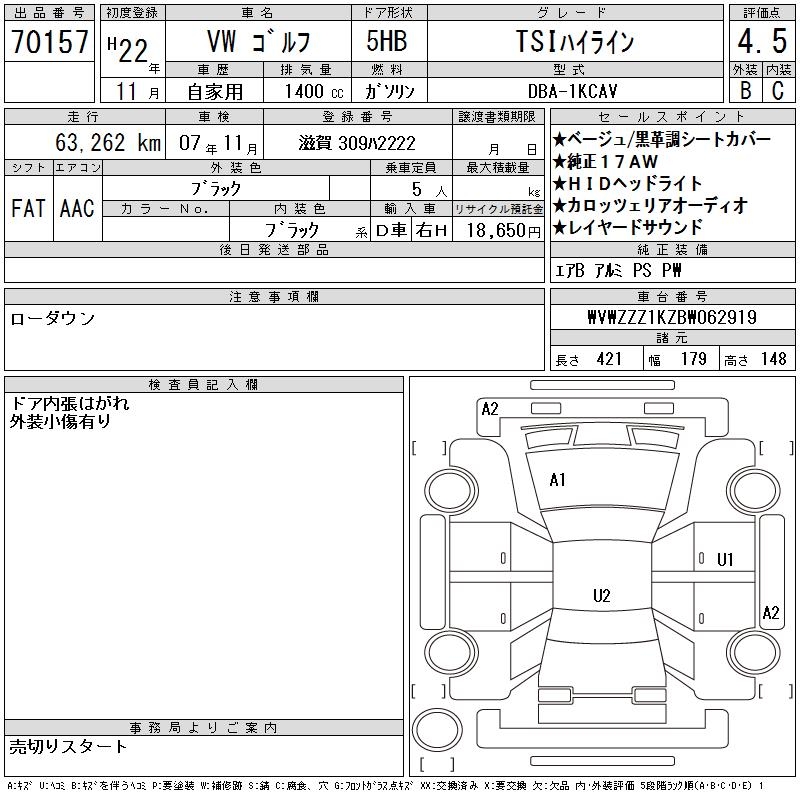 VOLKSWAGEN GOLF - лот 70157