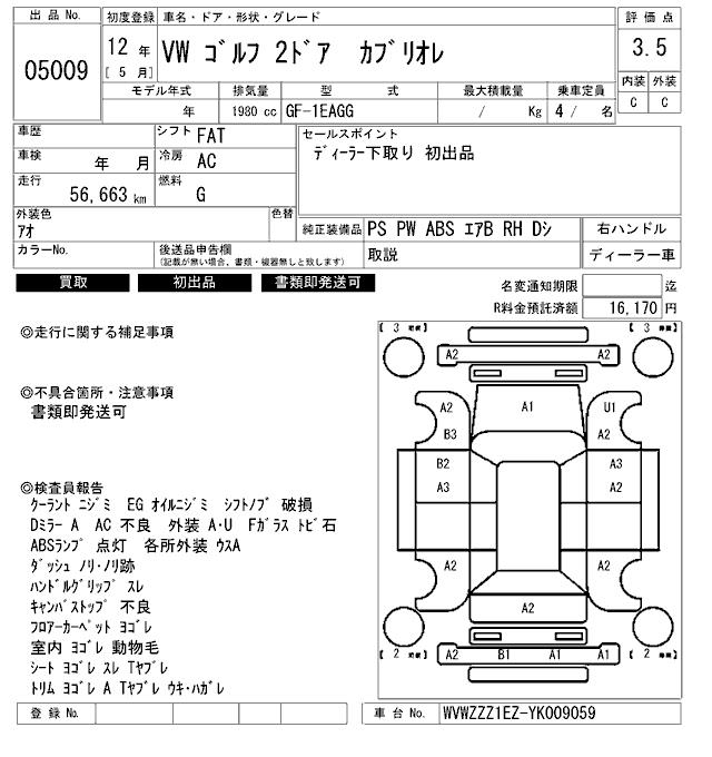VOLKSWAGEN GOLF CABRIO - лот 5009