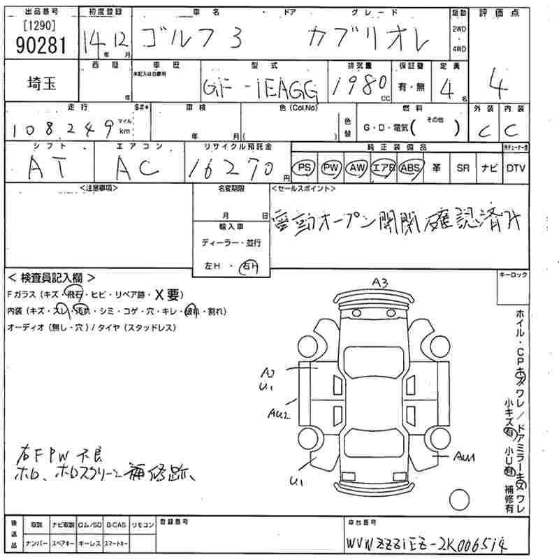 VOLKSWAGEN GOLF CABRIO - лот 90281