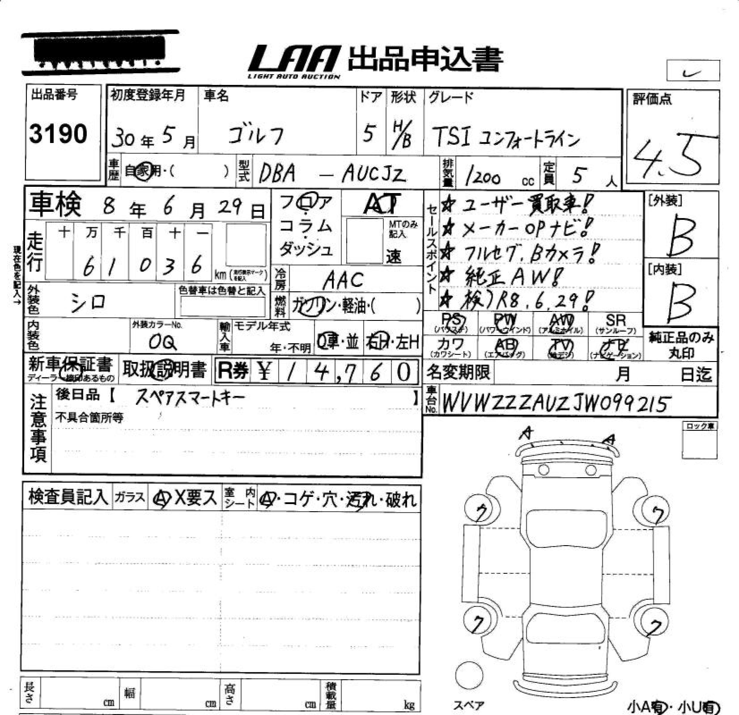 VOLKSWAGEN GOLF TSI COMFORT LINE - лот 3190