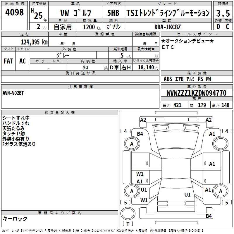 VOLKSWAGEN GOLF TSI TREND LINE BLUE MOTION - лот 4098