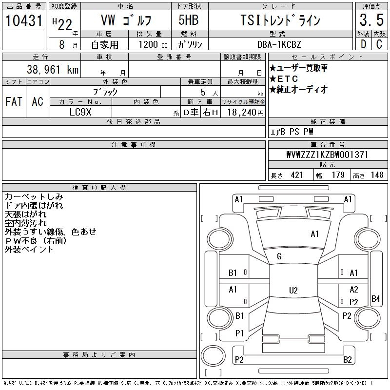 VOLKSWAGEN GOLF TSI TREND LINE - лот 10431
