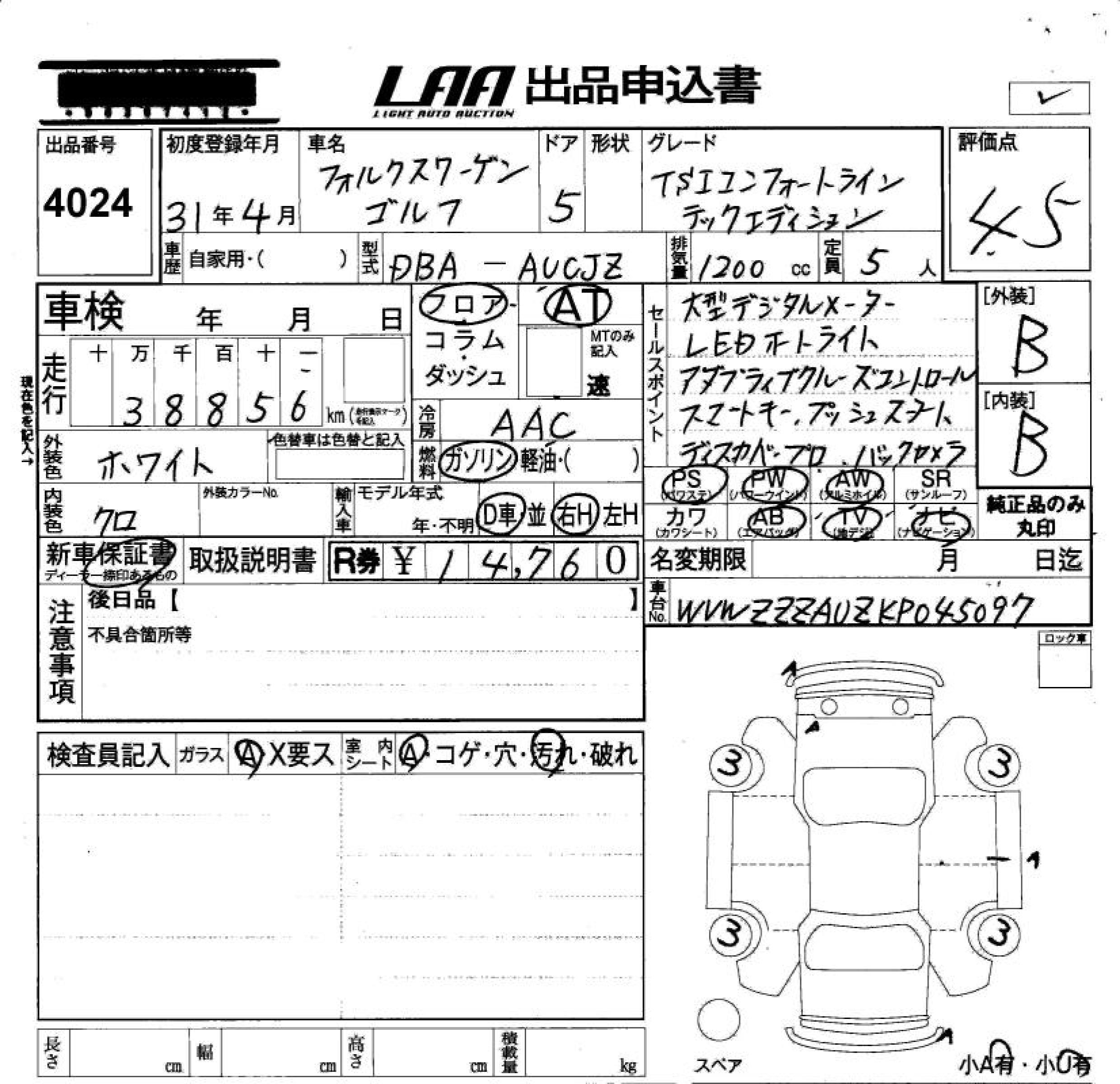 VOLKSWAGEN GOLF TSI COMFORT LA INTE - лот 4024