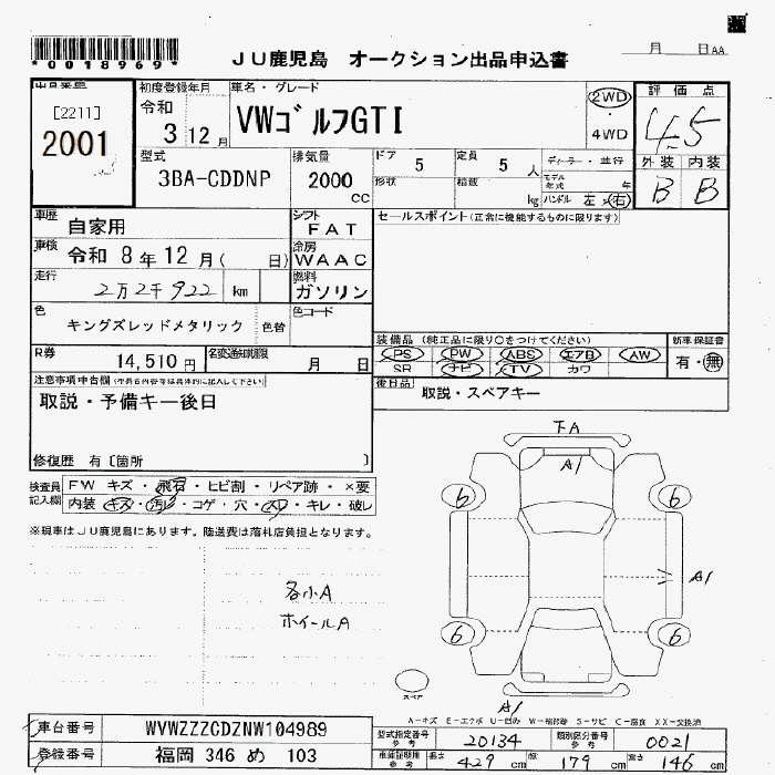 VOLKSWAGEN GOLF GTI - лот 2001