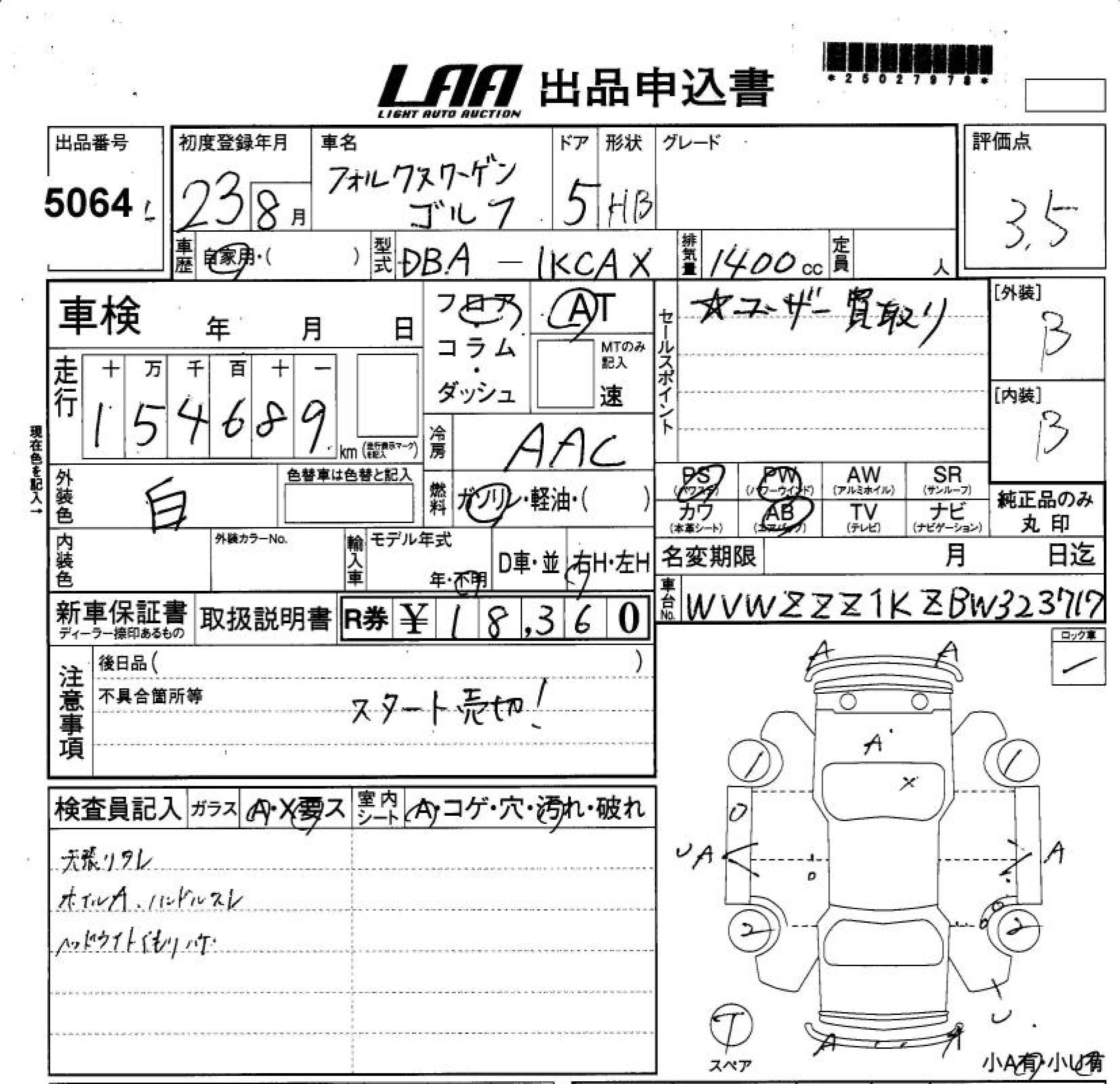 VOLKSWAGEN GOLF - лот 5064