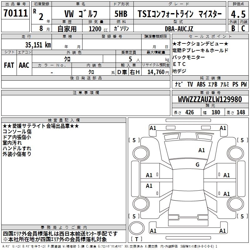 VOLKSWAGEN GOLF TSI COMFORT LINE MEISTER - лот 70111