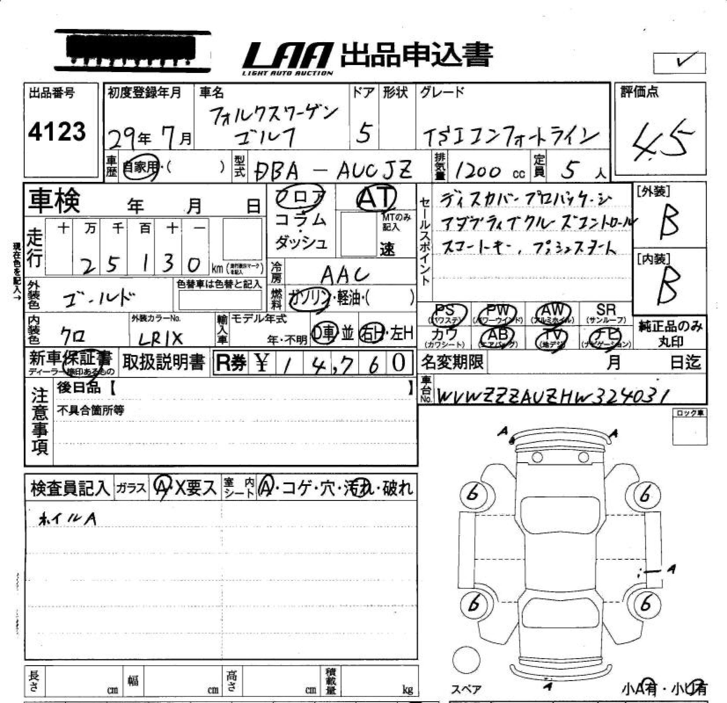 VOLKSWAGEN GOLF TSI COMFORT LINE - лот 4123