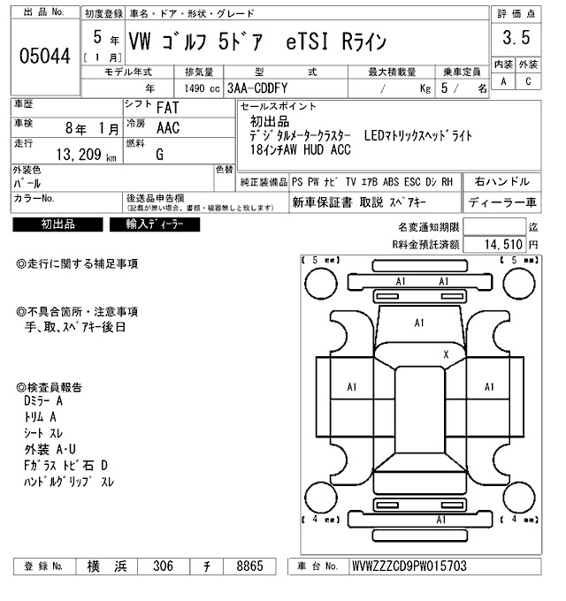 VOLKSWAGEN GOLF ETSI R LINE - лот 5044