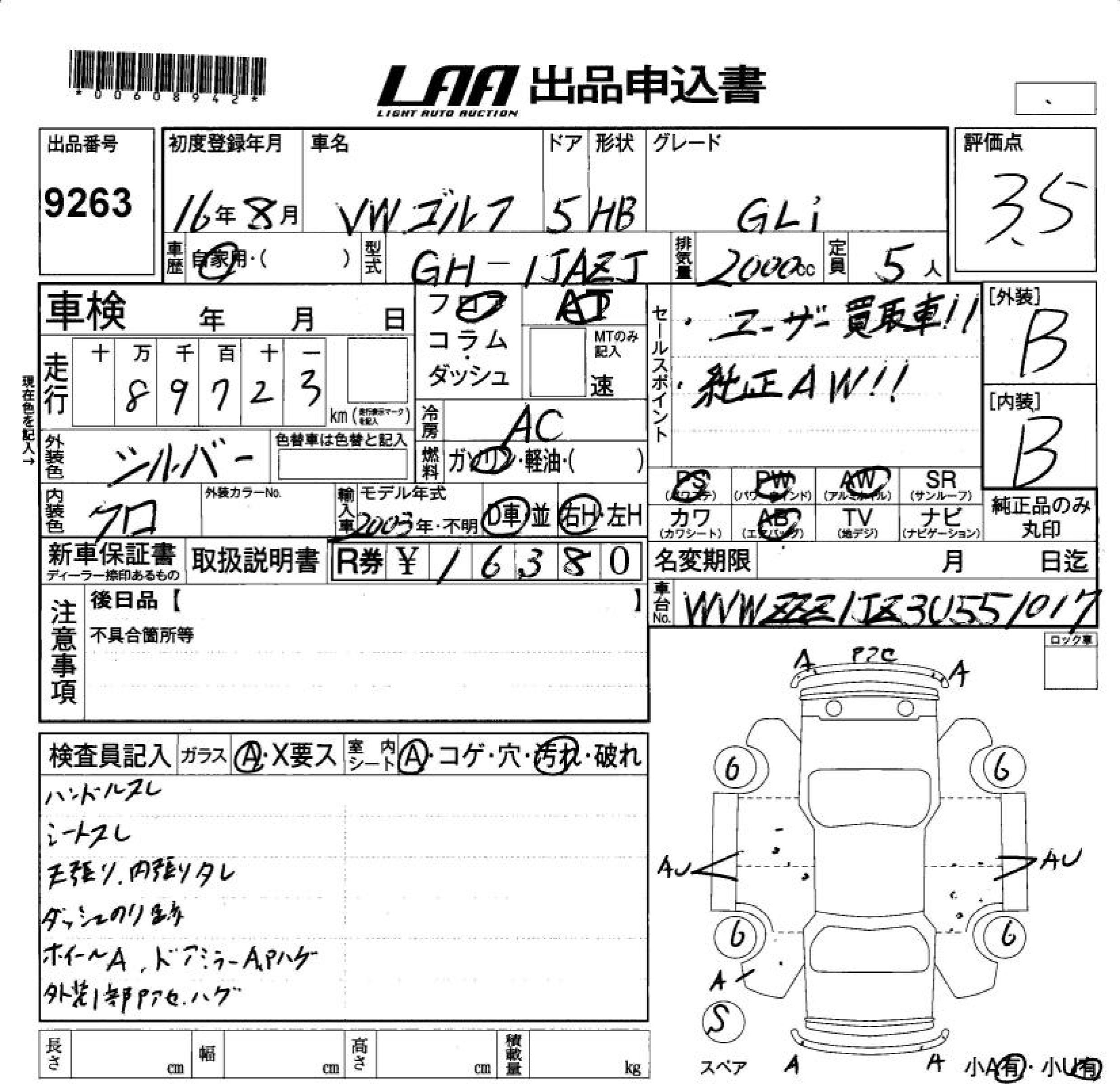 VOLKSWAGEN GOLF GLi - лот 9263