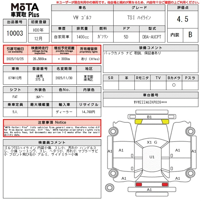 VOLKSWAGEN GOLF TSI HIGH LINE - лот 10003