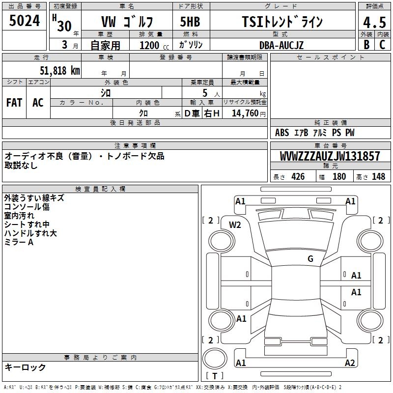 VOLKSWAGEN GOLF TSI TREND LINE - лот 5024
