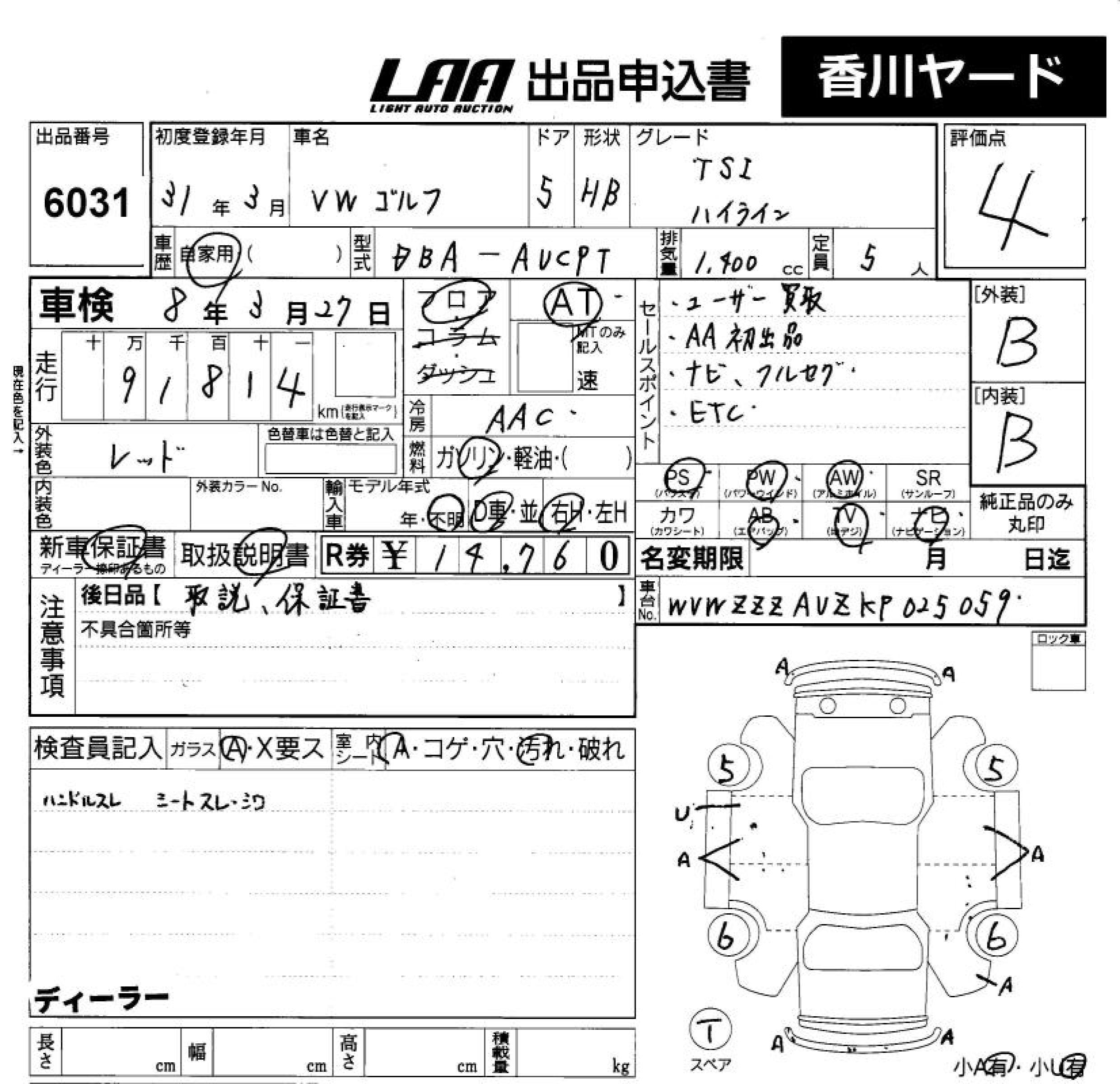 VOLKSWAGEN GOLF TSI HIGH LINE - лот 6031