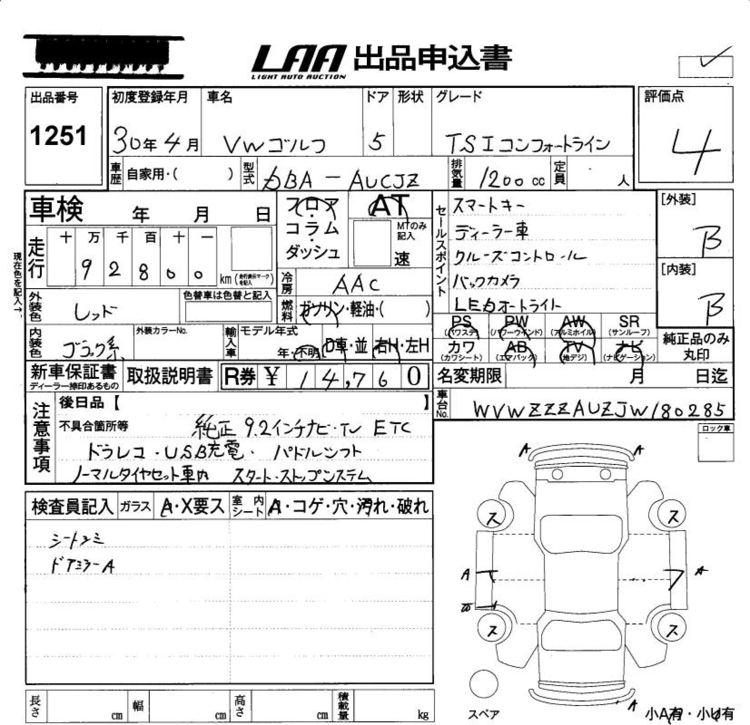 VOLKSWAGEN GOLF TSI COMFORT LINE - лот 1251