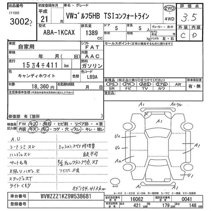 VOLKSWAGEN GOLF - лот 3002