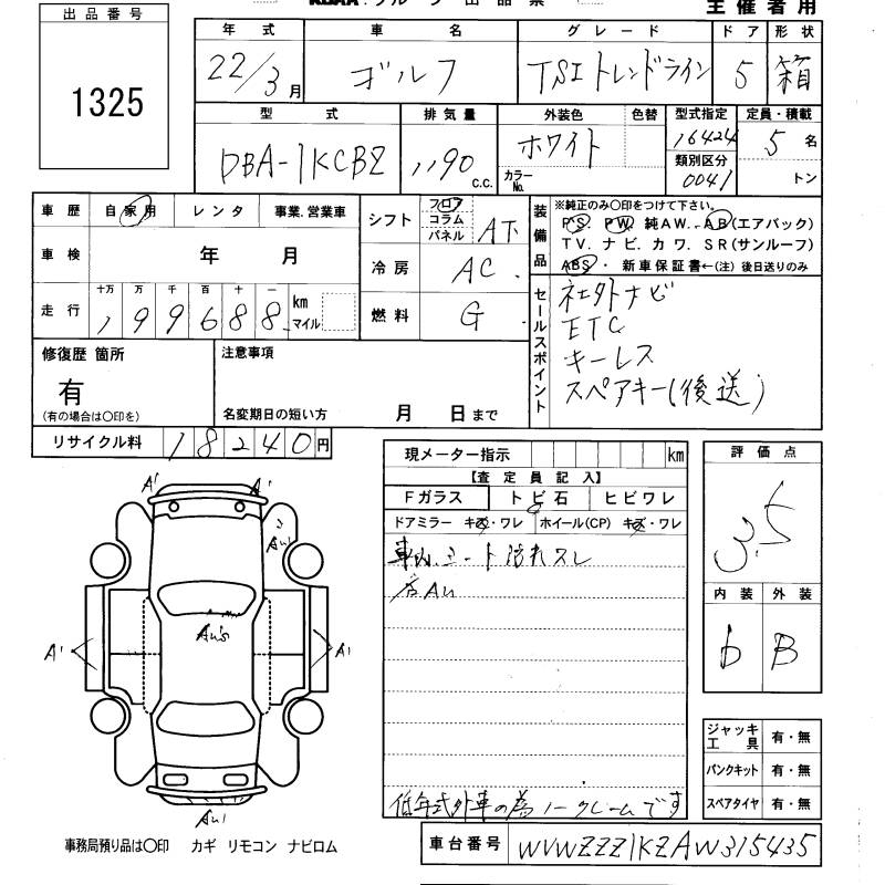 VOLKSWAGEN GOLF - лот 1325