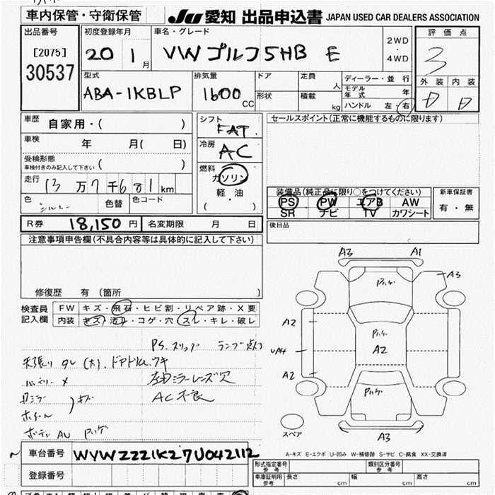 VOLKSWAGEN GOLF - лот 30537