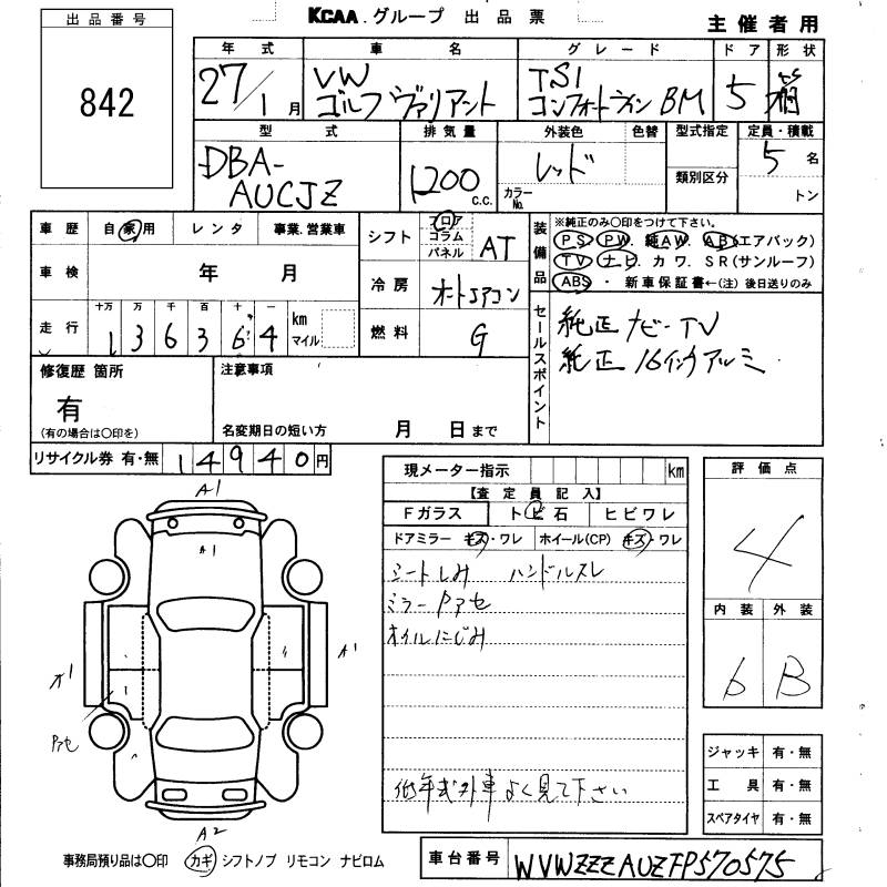 VOLKSWAGEN GOLF - лот 842