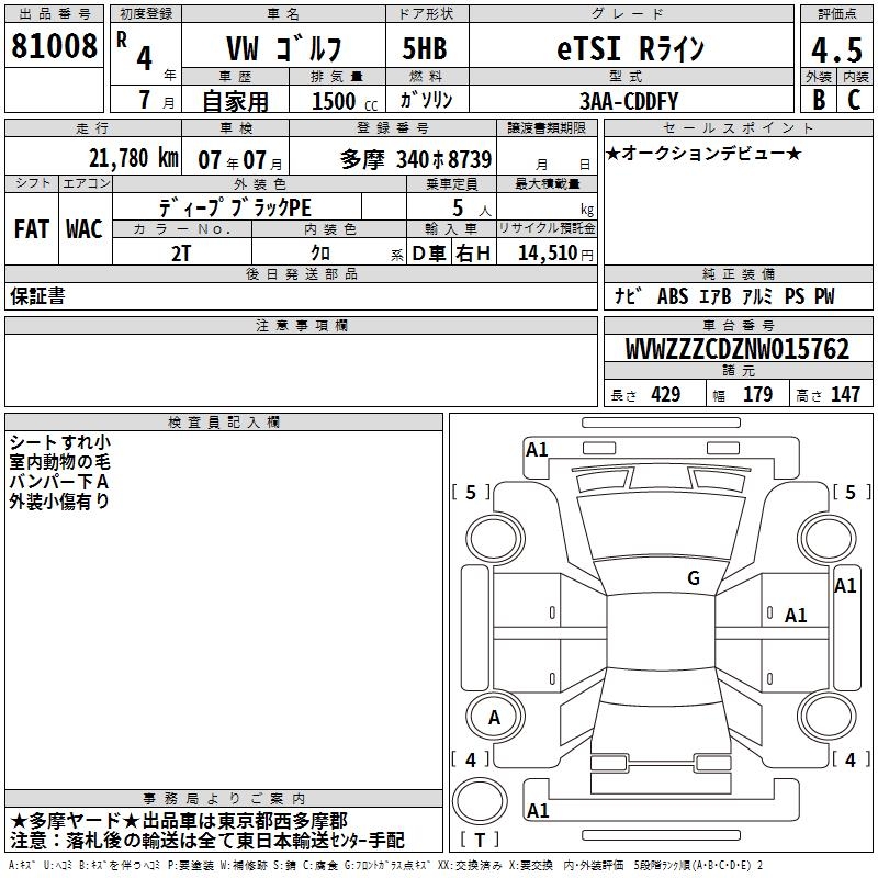 VOLKSWAGEN GOLF - лот 81008