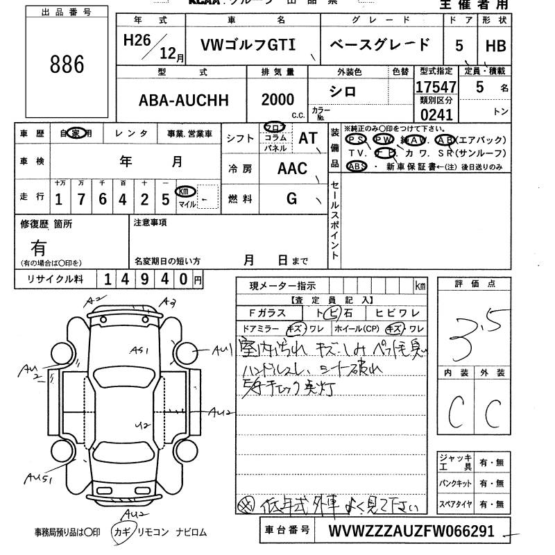Все аукционы VOLKSWAGEN GOLF GTI