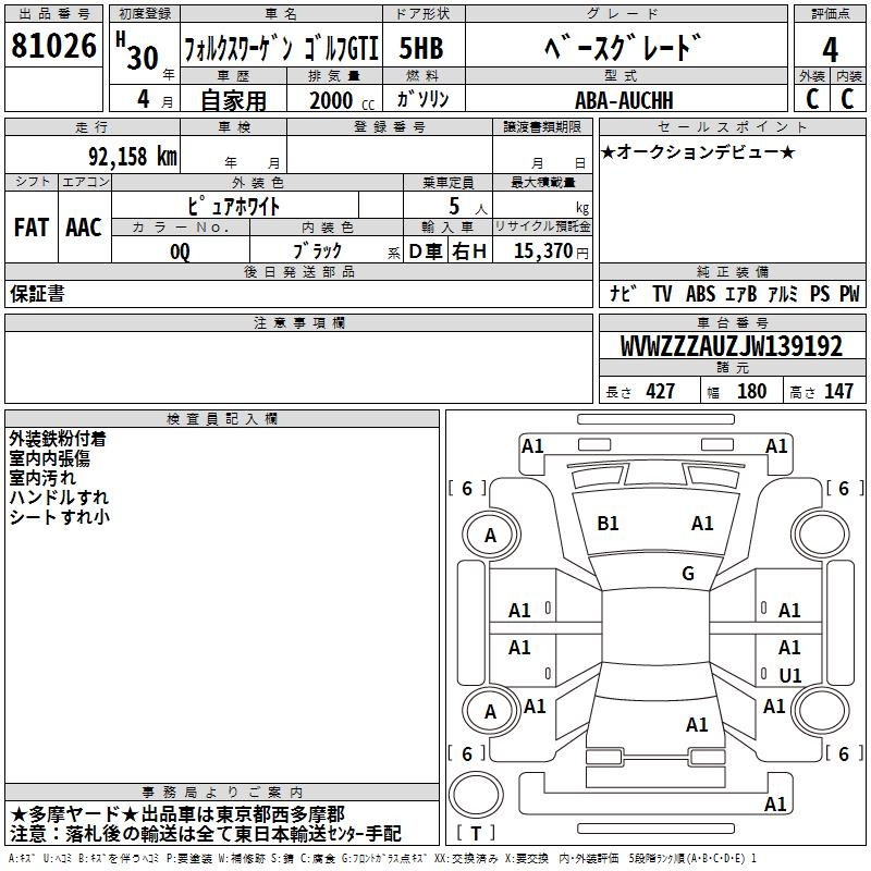 Все аукционы VOLKSWAGEN GOLF GTI