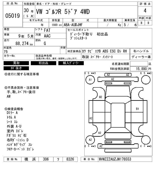 VOLKSWAGEN GOLF R - лот 5019