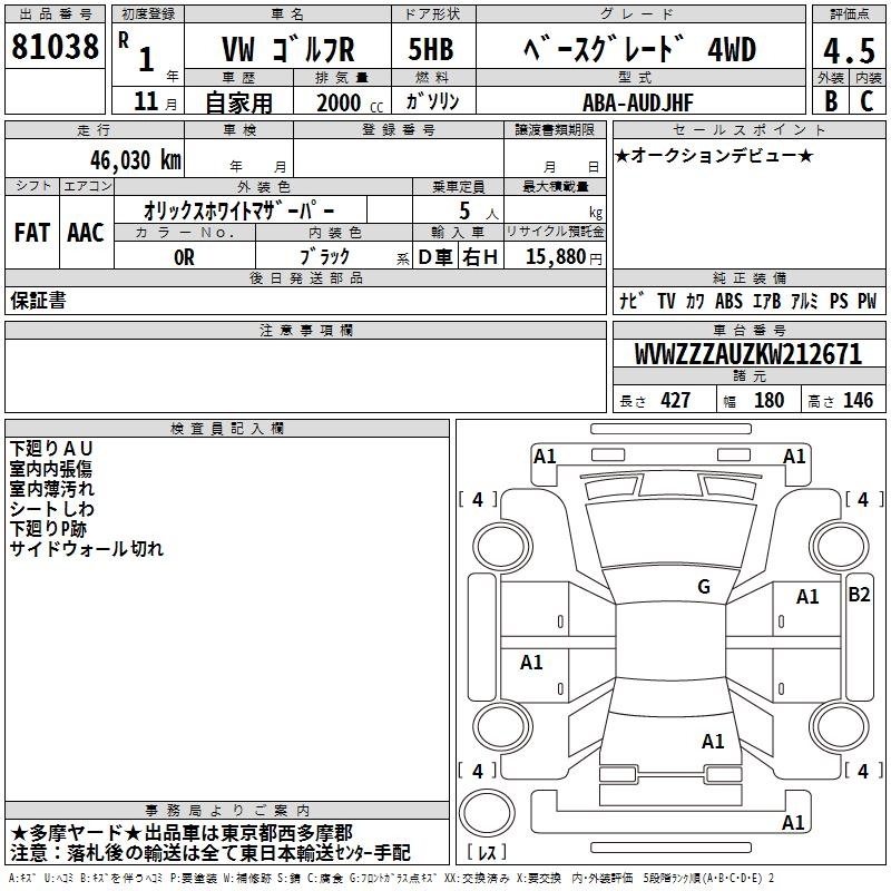 VOLKSWAGEN GOLF R - лот 81038