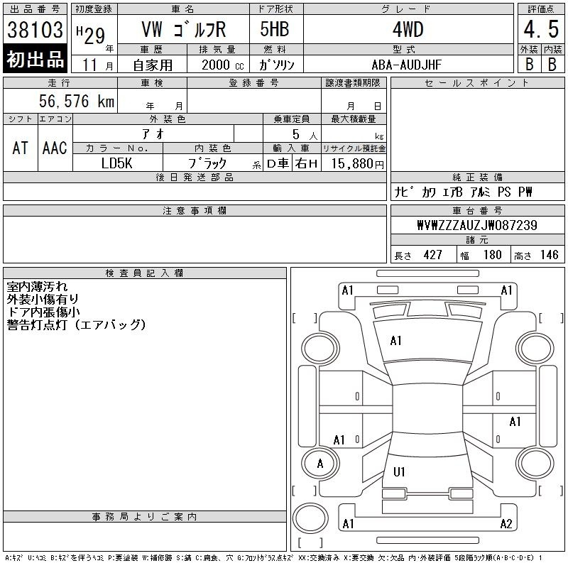 VOLKSWAGEN GOLF R - лот 38103