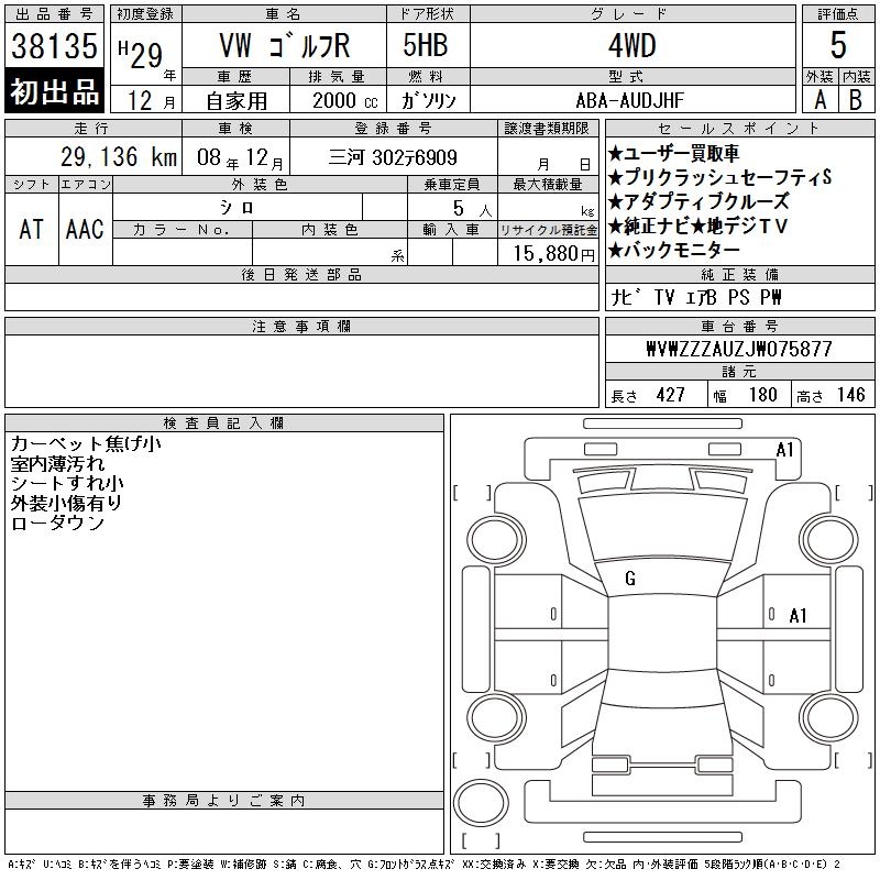 VOLKSWAGEN GOLF R - лот 38135