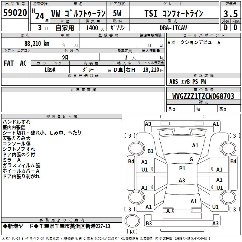 VOLKSWAGEN GOLF TOURAN - лот 59020