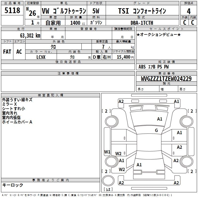 VOLKSWAGEN GOLF TOURAN - лот 5118