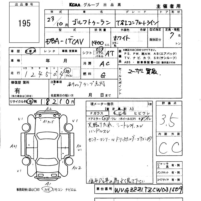 VOLKSWAGEN GOLF TOURAN - лот 195