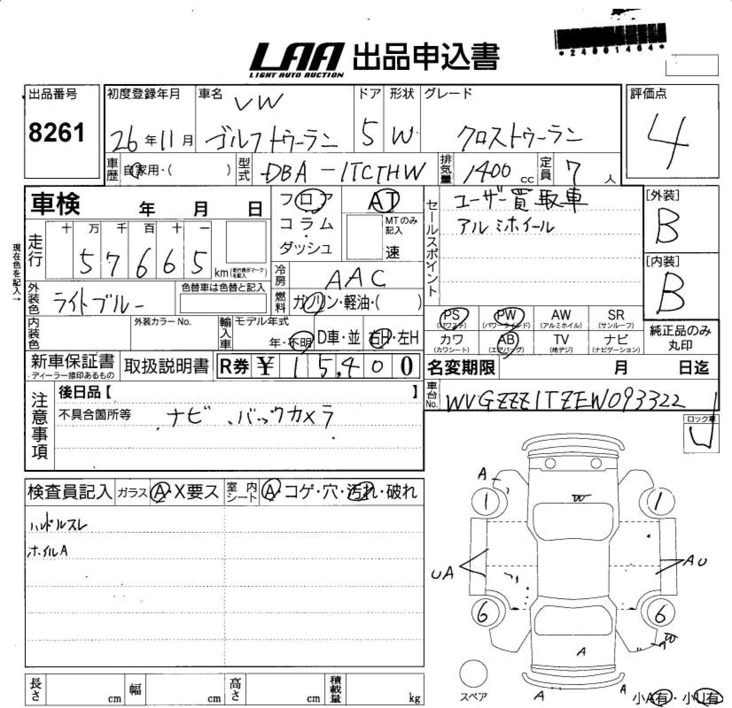 VOLKSWAGEN GOLF TOURAN - лот 8261