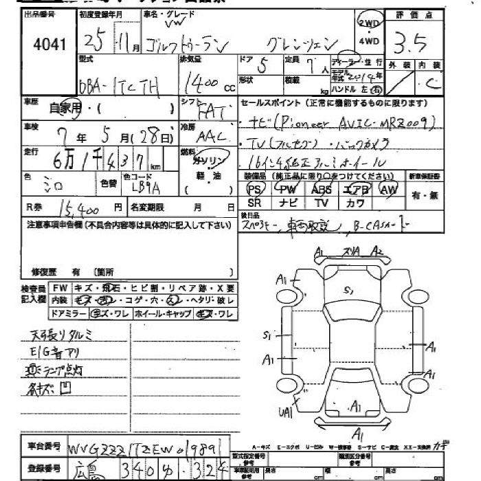 VOLKSWAGEN GOLF TOURAN - лот 4041
