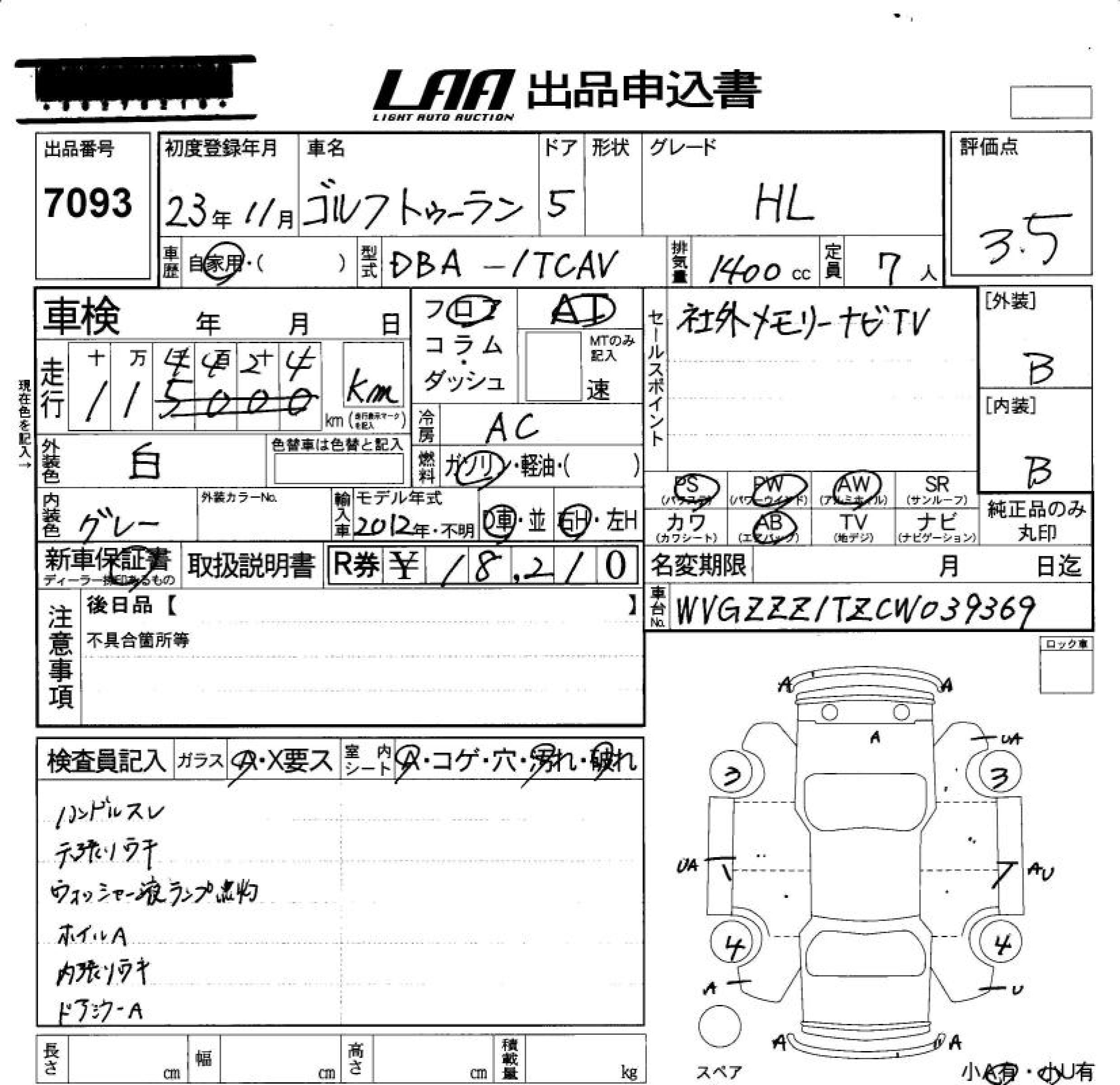 VOLKSWAGEN GOLF TOURAN - лот 7093