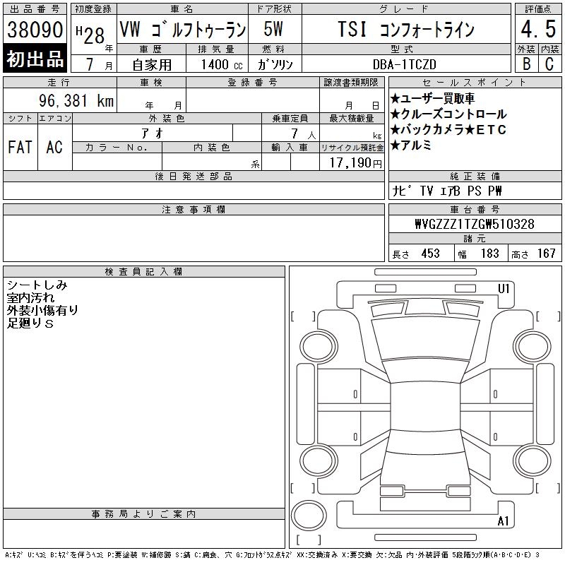 VOLKSWAGEN GOLF TOURAN - лот 38090