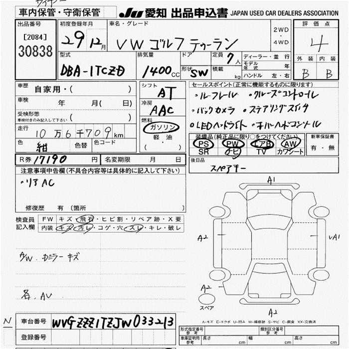 VOLKSWAGEN GOLF TOURAN - лот 30838