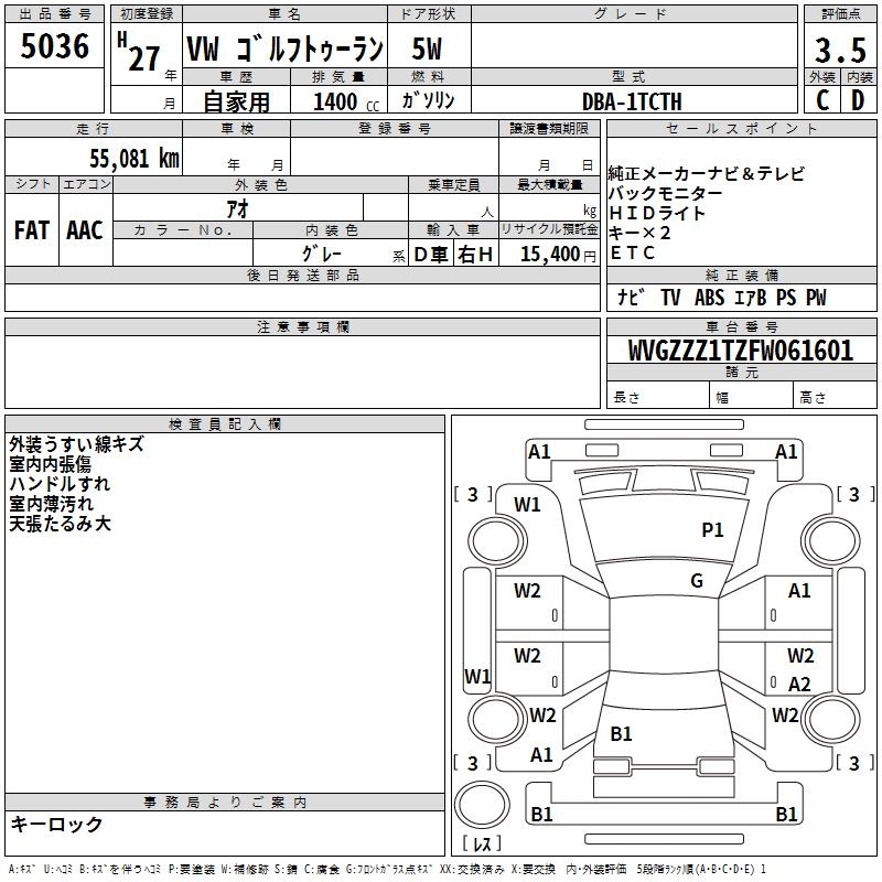 VOLKSWAGEN GOLF TOURAN - лот 5036