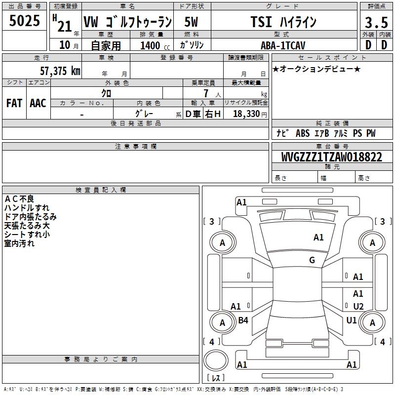 VOLKSWAGEN GOLF TOURAN - лот 5025
