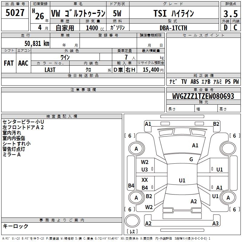 VOLKSWAGEN GOLF TOURAN - лот 5027