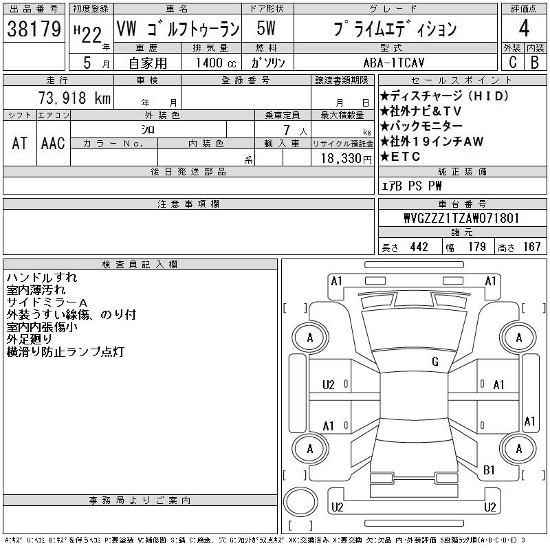 VOLKSWAGEN GOLF TOURAN - лот 38179
