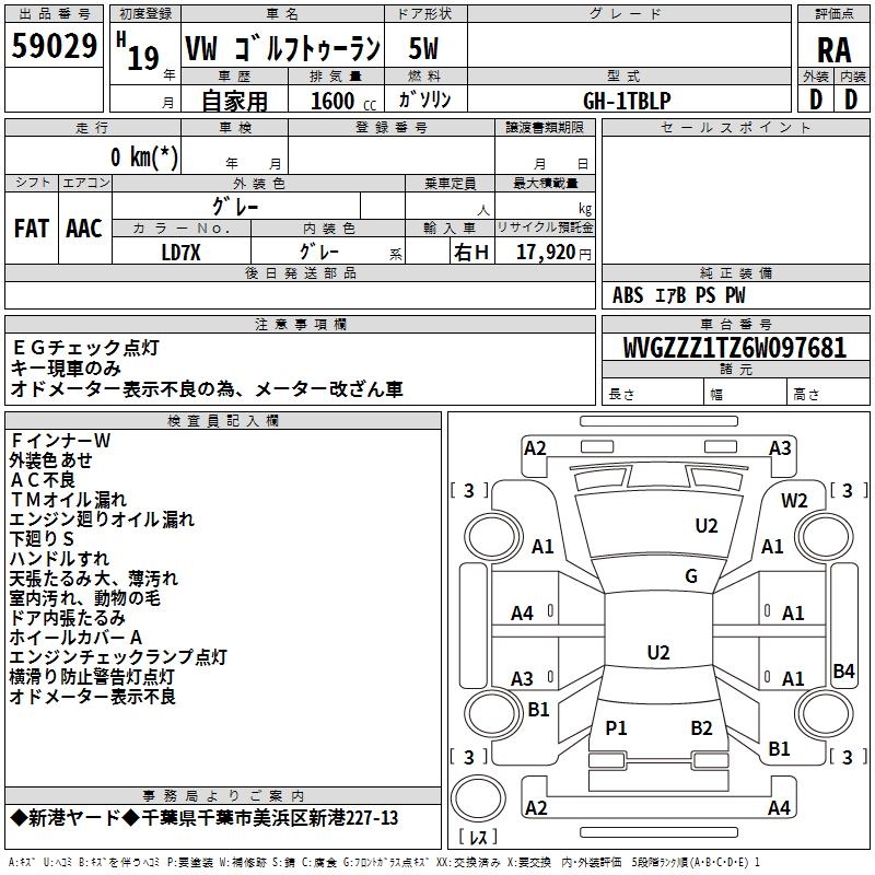 VOLKSWAGEN GOLF TOURAN - лот 59029