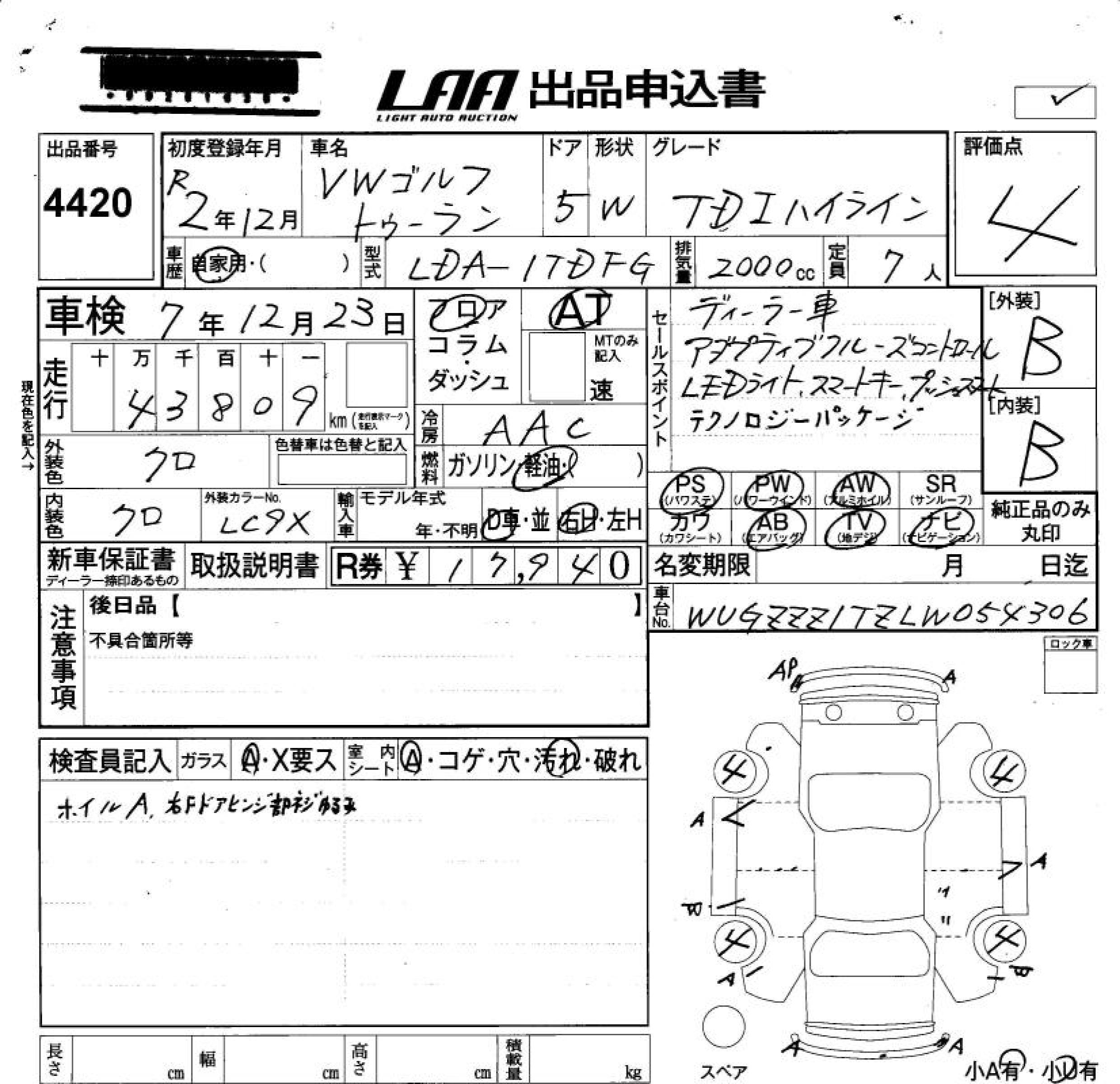 VOLKSWAGEN GOLF TOURAN - лот 4420