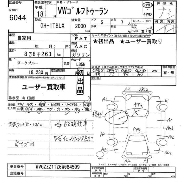 VOLKSWAGEN GOLF TOURAN - лот 6044