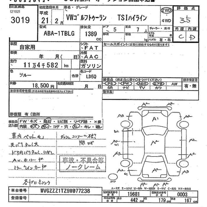 VOLKSWAGEN GOLF TOURAN - лот 3019