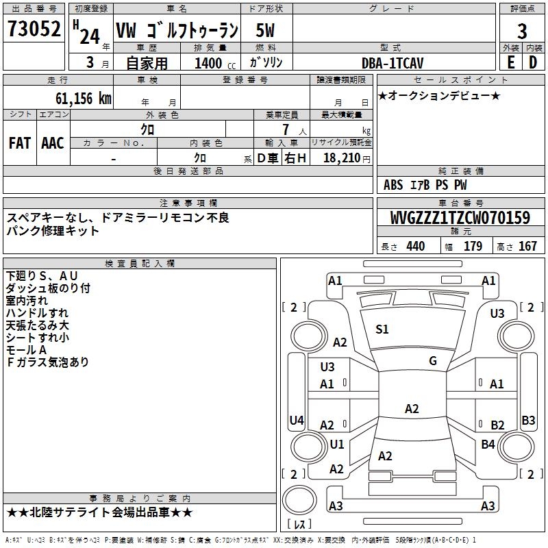 VOLKSWAGEN GOLF TOURAN - лот 73052