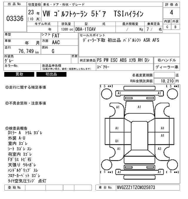 VOLKSWAGEN GOLF TOURAN - лот 3336