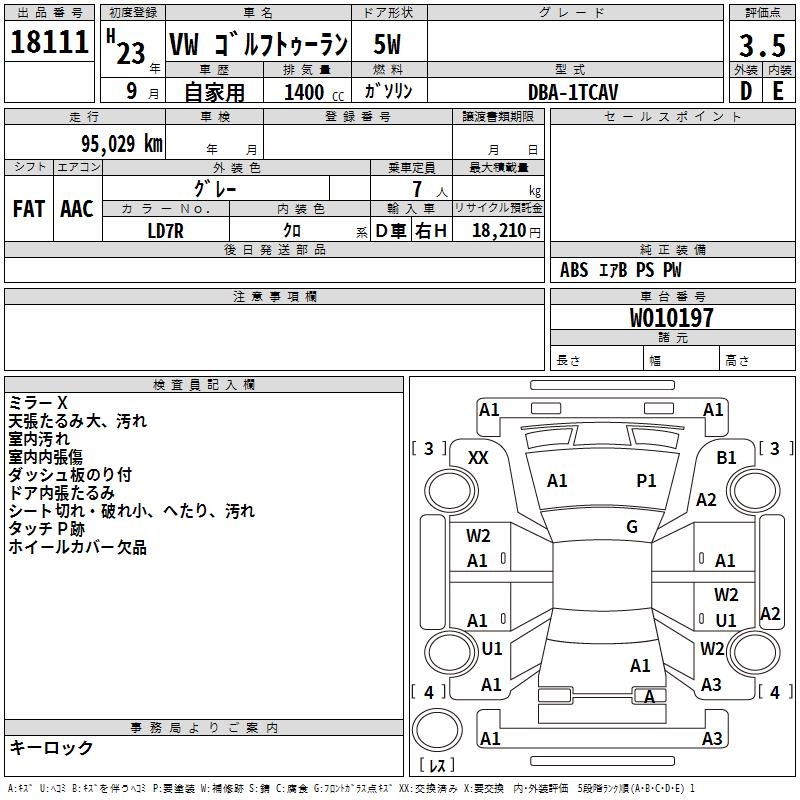 VOLKSWAGEN GOLF TOURAN - лот 18111